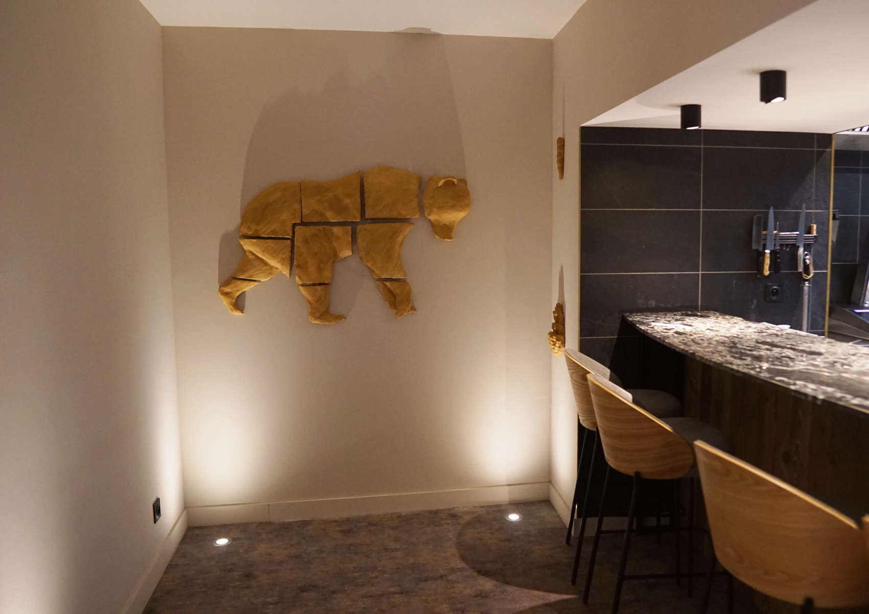 Applique murale, argile cuisant rouge + engobe terres noire et blanche